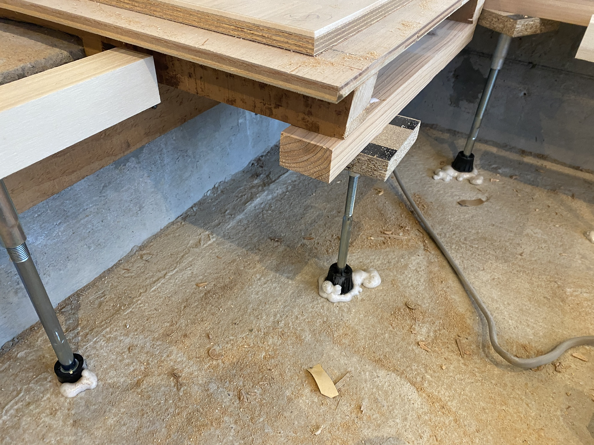 置き床工法で、工事前はタイルカーペットが敷き詰めていて、それを撤去して床を造作してもらったとのこと。